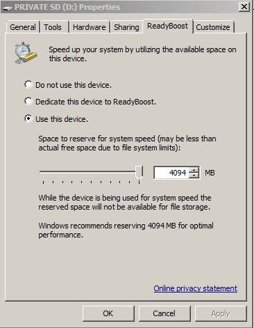Select the amount of memory you want to allocate to this feature (max 4Gb / flash drive -> you can use 2 if you whish)