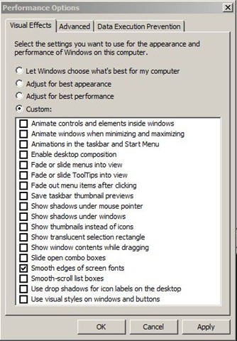 Uncheck all the options except “smooth edges of screen fonts” which helps for the readability on your Netbook